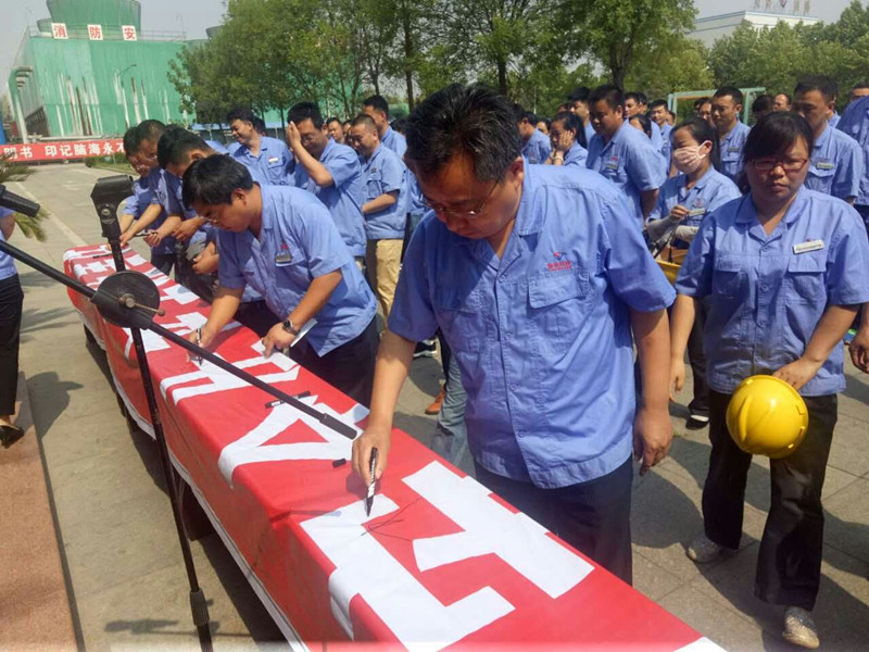 随后,副总经理高中峰带领全员就强化安全意识、保证安全生产进行了庄严宣誓,公司领导与全体人员一起进行了安全签名,营造了"安全生产月"活动的浓厚氛围。