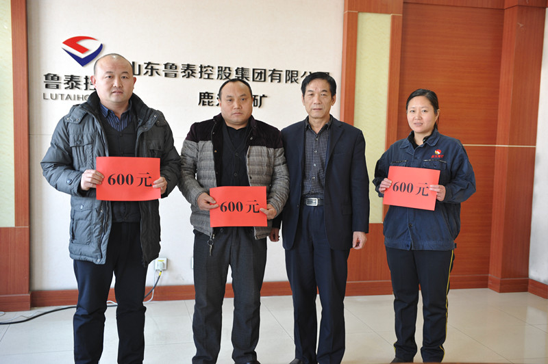 2月5日,鹿洼煤矿对该矿近期发生的两起拾金不昧的行为进行了通报表扬,奖励安装工区职工顾兴均、范以礼,运转工区陈巧亚每人600元现金,矿工会主席郑景鹏为他们颁发奖金。